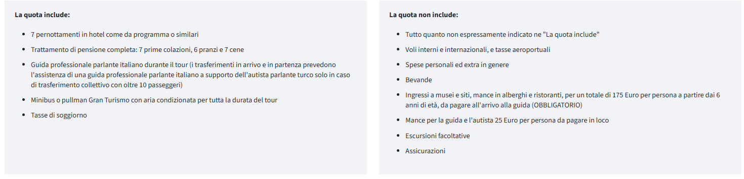 Nota: i trasferimenti in arrivo e in partenza prevedono l’assistenza di una guida professionale parlante italiano a supporto dell’autista parlante turco solo in caso di trasferimento collettivo con oltre 10 passeggeri.